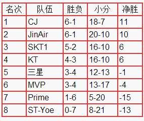 季后赛采用单场BO7的KOF冒泡赛制,常规赛积分第一的CJ战队将直接晋级季后赛决赛,第二名JinAir直接晋级半决赛,而分列三四名的SKT1与KT将争夺晋级半决赛的资格。每支战队将通过季后赛的最终成绩获得相应的总积分,SPL15赛季四个轮次全部结束后将凭借总积分决定最终赛季季后赛的资格。