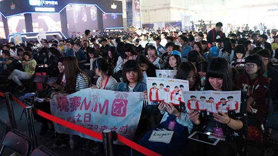 在IET比赛现场观众席前排,小编发现了一支观赛MM团,从手中海报能够看出WE人气很旺。据了解,这支美眉团是有组织专程赶来为WE助阵加油的,小编也将稍后联系这支团队的负责人,让大家深入了解他们。