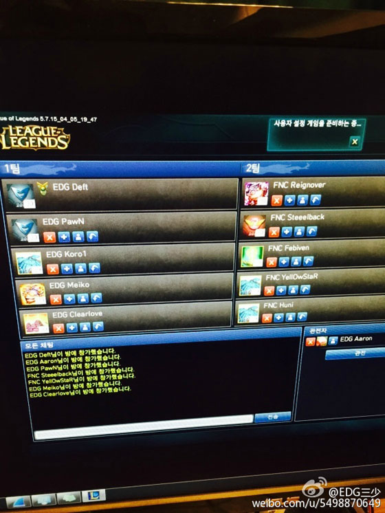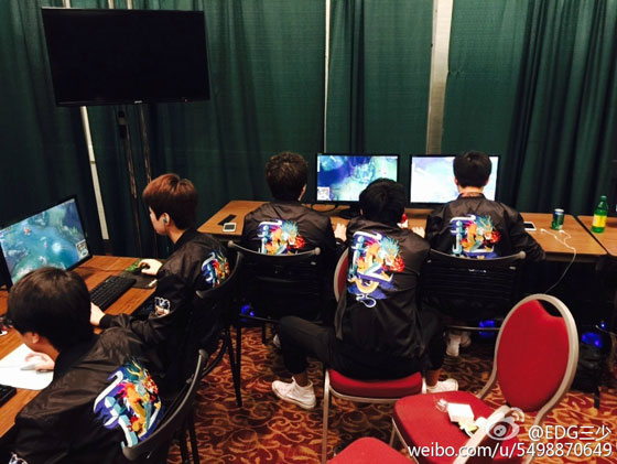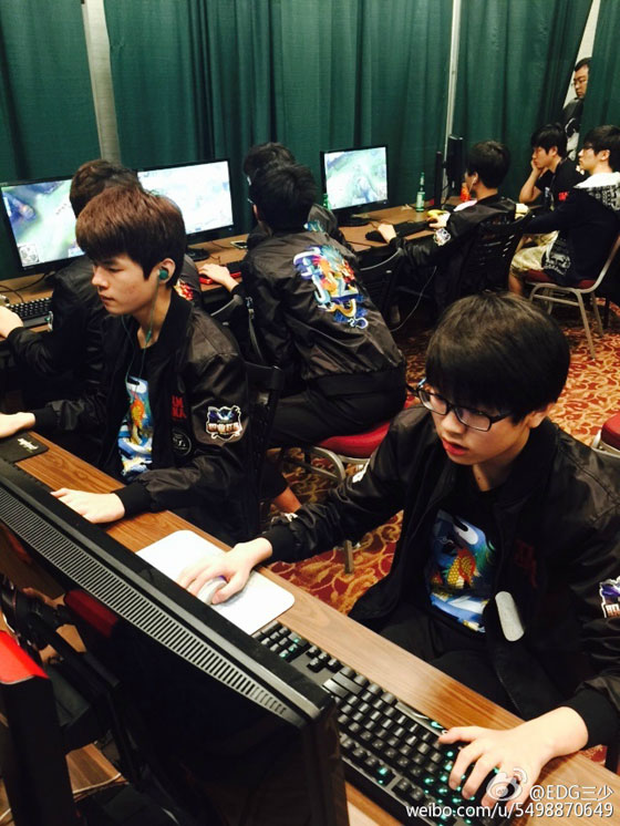 到了赛场训练的房间,队员都熟练的插上外设,准备今天的训练赛了。在EDG成立至今,有很多队伍从来都没打过,连训练赛都没有。其中的两支跟我们约了今明两天的长时间训练。下午2点,第一个陌生的对手进驻了。