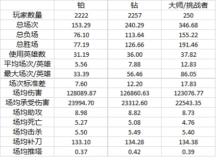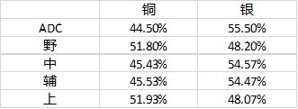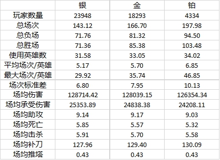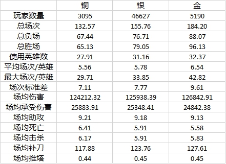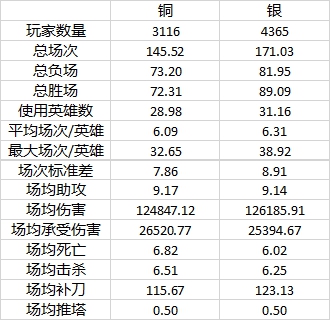 稳居青铜和已经上升至白银的玩家在各项数据上差距如下