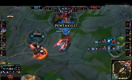 30分钟前后,双方在大龙处展开多次激战,FNC也打出成功埋伏团灭SKT。但是经验还是韩国队伍更胜一筹,最终SKT拿下大龙,比赛的局势也开始慢慢扭转。