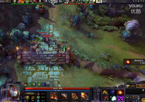 那是在DOTA2巅峰联赛上,HGT前期所向披靡,杀得VG.P是人仰马翻!游戏进行到四十分钟的时候,拿塔带盾,五人齐推上路高地。