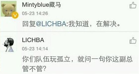 焦急的粉丝们立刻前往微博进行询问,得到了iG经理藏马”正在解决“的答复。看起来iG战队的内部确实发生了些什么。于此同时,领队错觉在水友们的逼问之下也显得忧心忡忡,甚至表态:”这个领队谁爱做谁做“。
